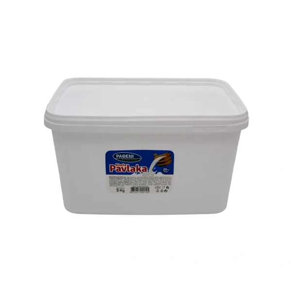Naziv: PAVLAKA 20% m.m. KANTA 5kg. Pakovanje: KANTA 5kg Jedinica: kom Vrsta proizvoda: PAVLAKA Kategorija proizvoda: Kiselo-mliječni proizvodi